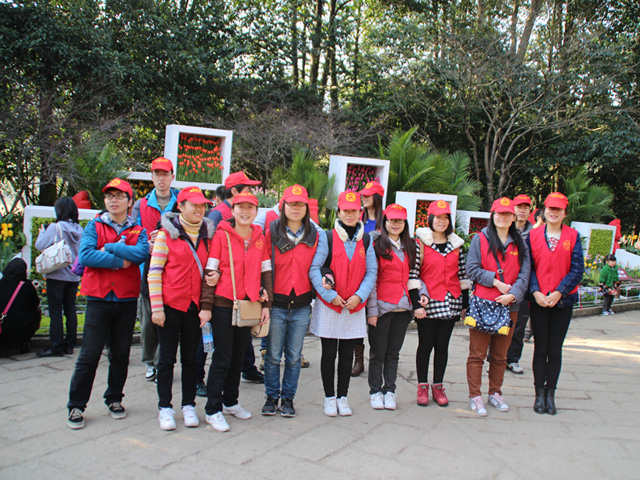 2014315,由临床医学1009团支部同学组成的志愿者服务队,进行了太子湾郁金香花展志愿者服务活动。